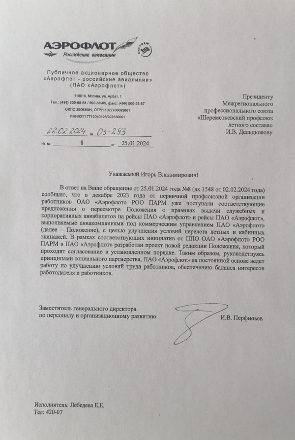 ШПЛС получил ответ "Аэрофлота" по изменению кода приоритета для пилотов